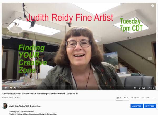 REMINDER with Topic AND VIDEO Correction: Tonight Open Studio Zoom Meeting to Hang Out and Share TOPIC: Structure, Design, and Composition at 7 pm central time